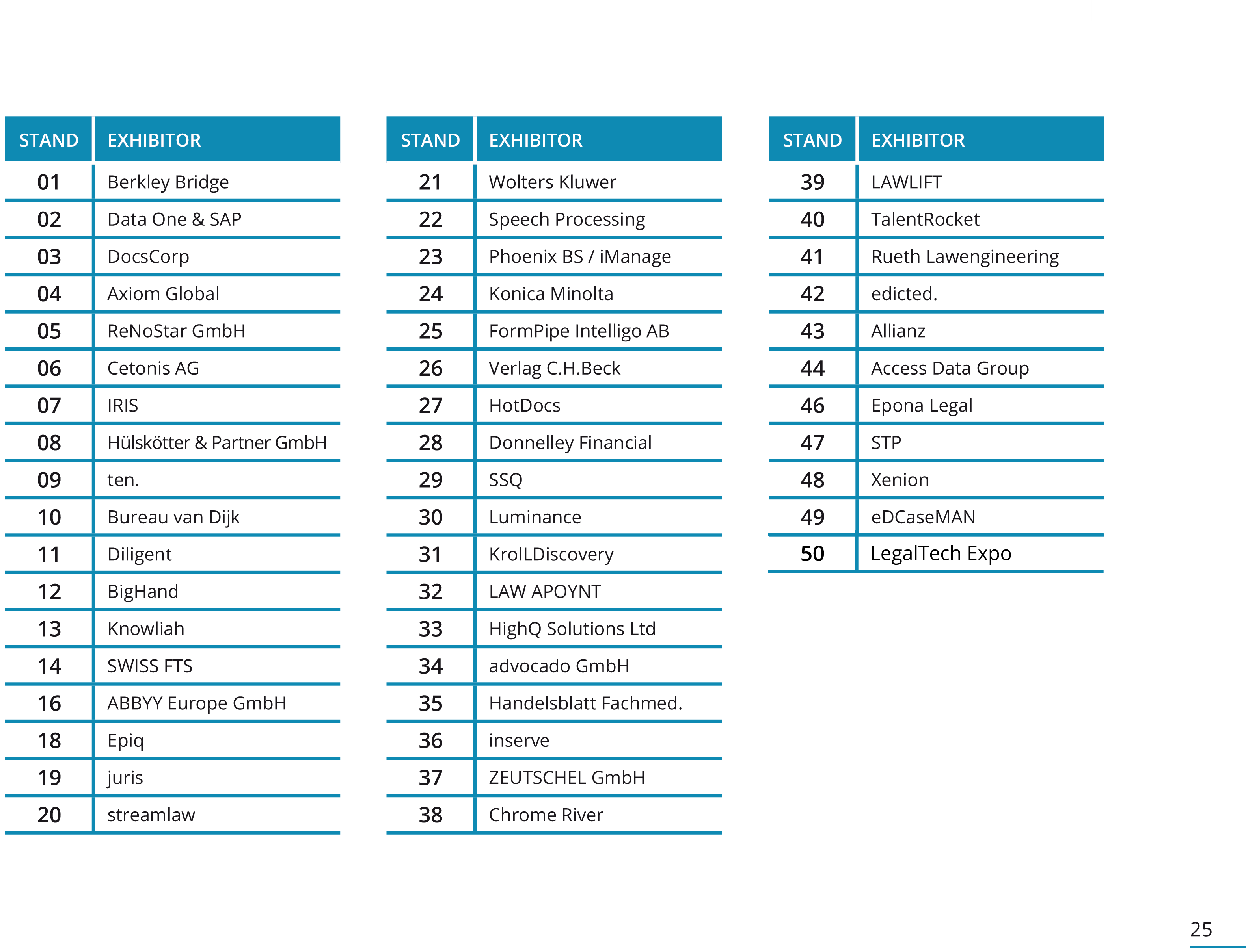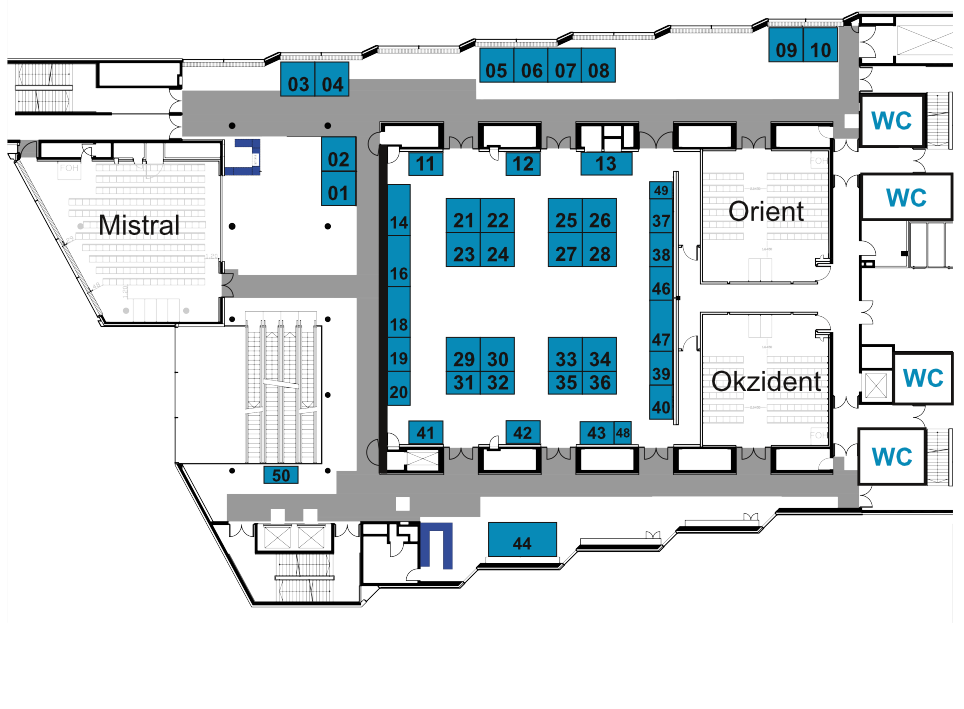 Unten abgebildet ist der Raumplan mit den einzelnen Ausstellungsflächen und eine Legende aller Aussteller.